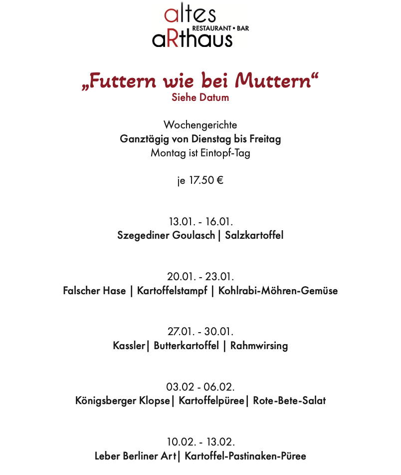 Wir posten hier regelmäßig unser aktuelles Menü, sowie die wechselnden Eintöpfe.